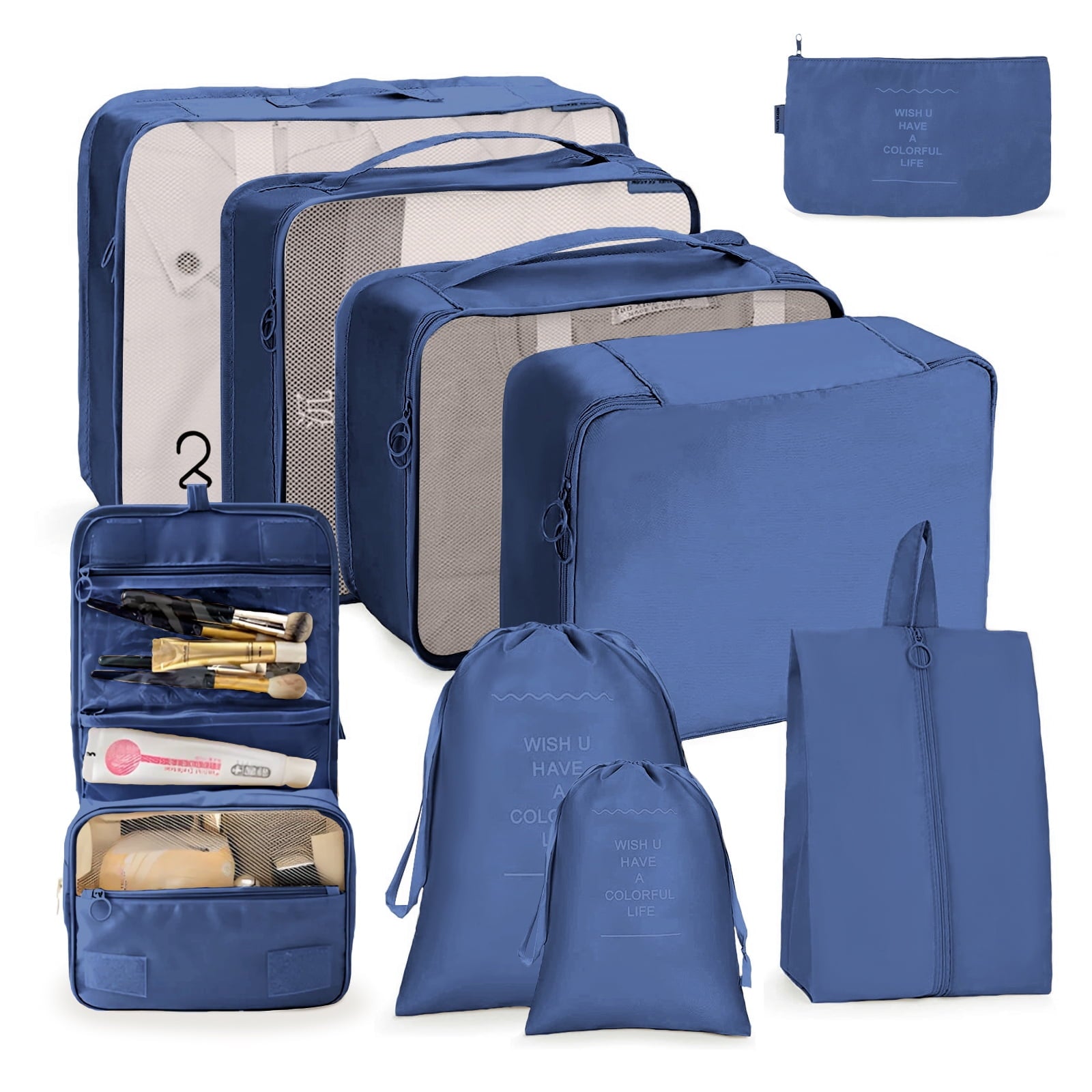 DAK07TBPC0000NB9PCS Packing Cubes 9 Sets for Travel Luggage, Luggage Organizer Set with Hanging Toiletry Bag & Shoe Bag, Breathable Mesh Vacation Essentials for Suitcase, Travel Storage Bags for Men Women, DAK07TBPC0000NB9PCS