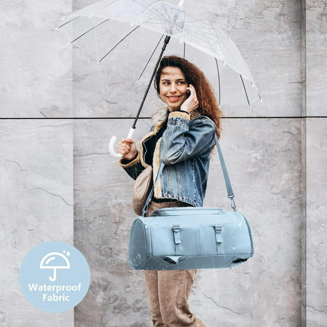 - Even in the rainy days, you do not have to worry about wetting this weekender overnight bag. This duffel bag's fabric is well performed in anti-wrinkle, even if the travel backpack is squeezed by other heavy items for one year, you will not find wrinkles when you use it again.