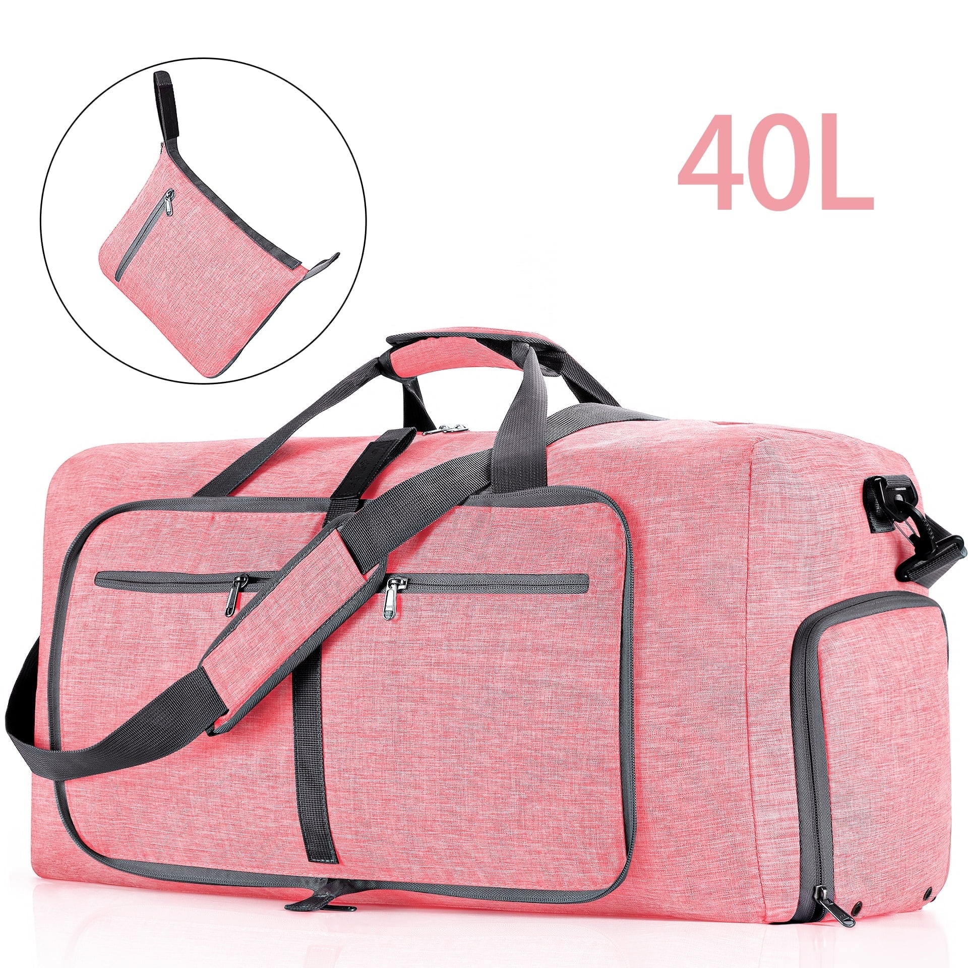 DAK13DBTB0000PK40L 40L Duffle Bag with Shoes Compartment, 20" Foldable Travel Duffel Bags for Men Women, Large Packable Travel Bag Water Repellent & Tear Resistant, Overnight Weekend Bag for Men Pink
