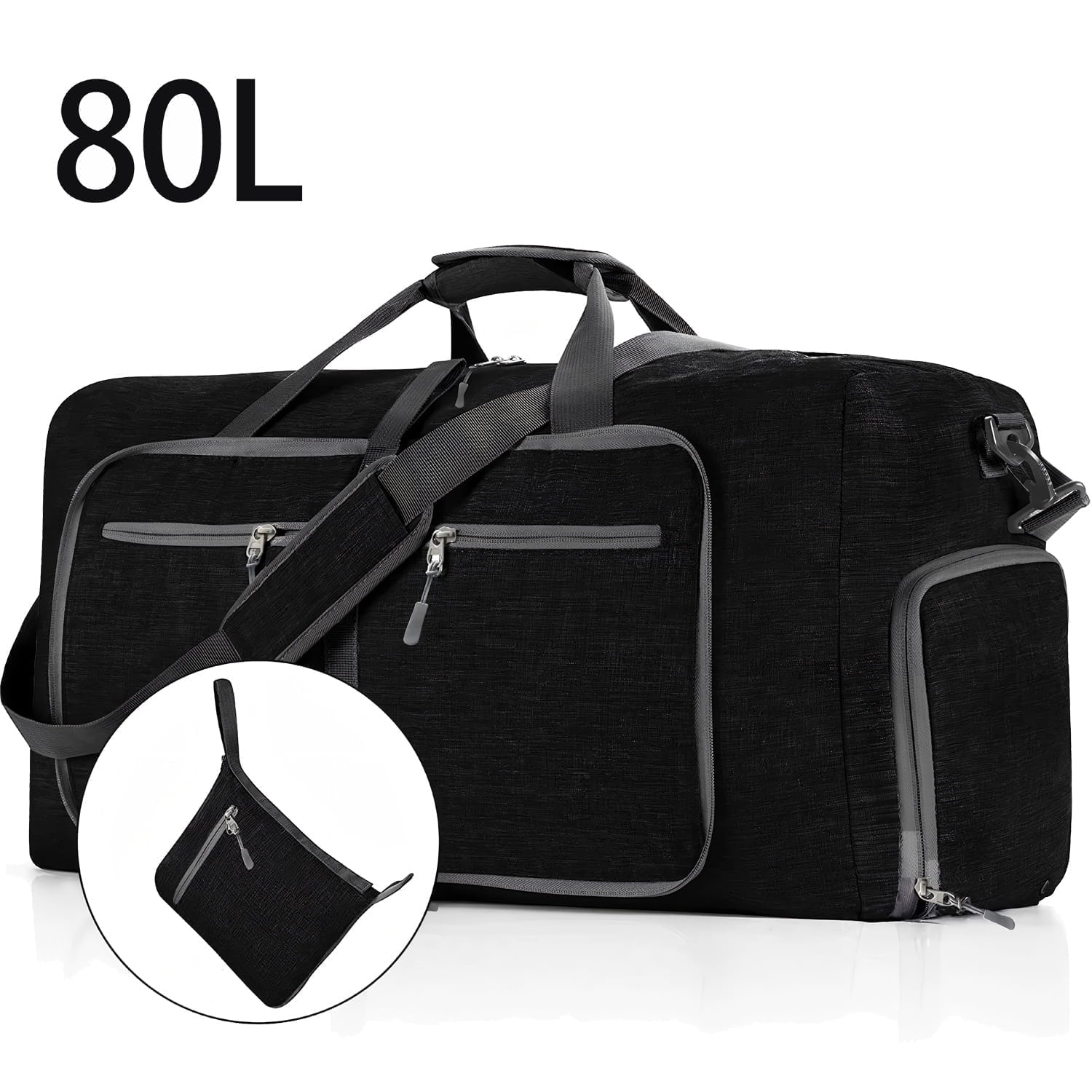 DAK14DBTB0000BK80L Travel Duffle Bag, 80L Foldable Weekender Bags for Women with Shoe Compartment, Carry on Overnight Bag for Men Women, Gym Travel Bag Water Repellent & Tear Resistant, Black