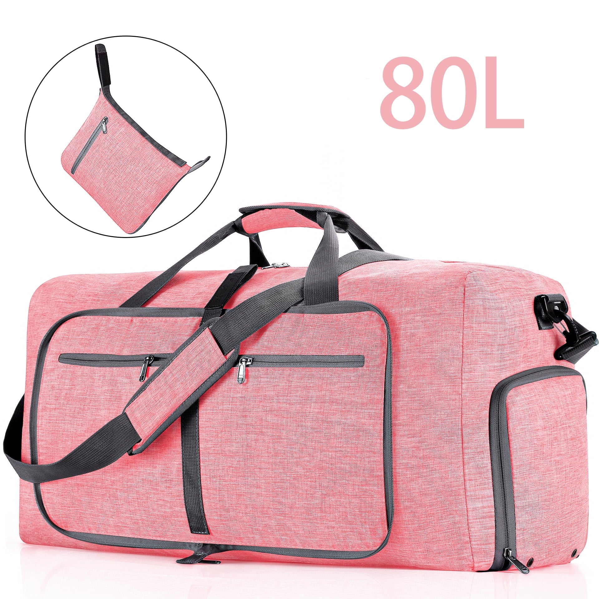 DAK14DBTB0000PK80L Travel Duffle Bag, 80L Foldable Weekender Bags for Women with Shoe Compartment, Carry on Overnight Bag for Men Women, Gym Travel Bag Water Repellent & Tear Resistant, Pink