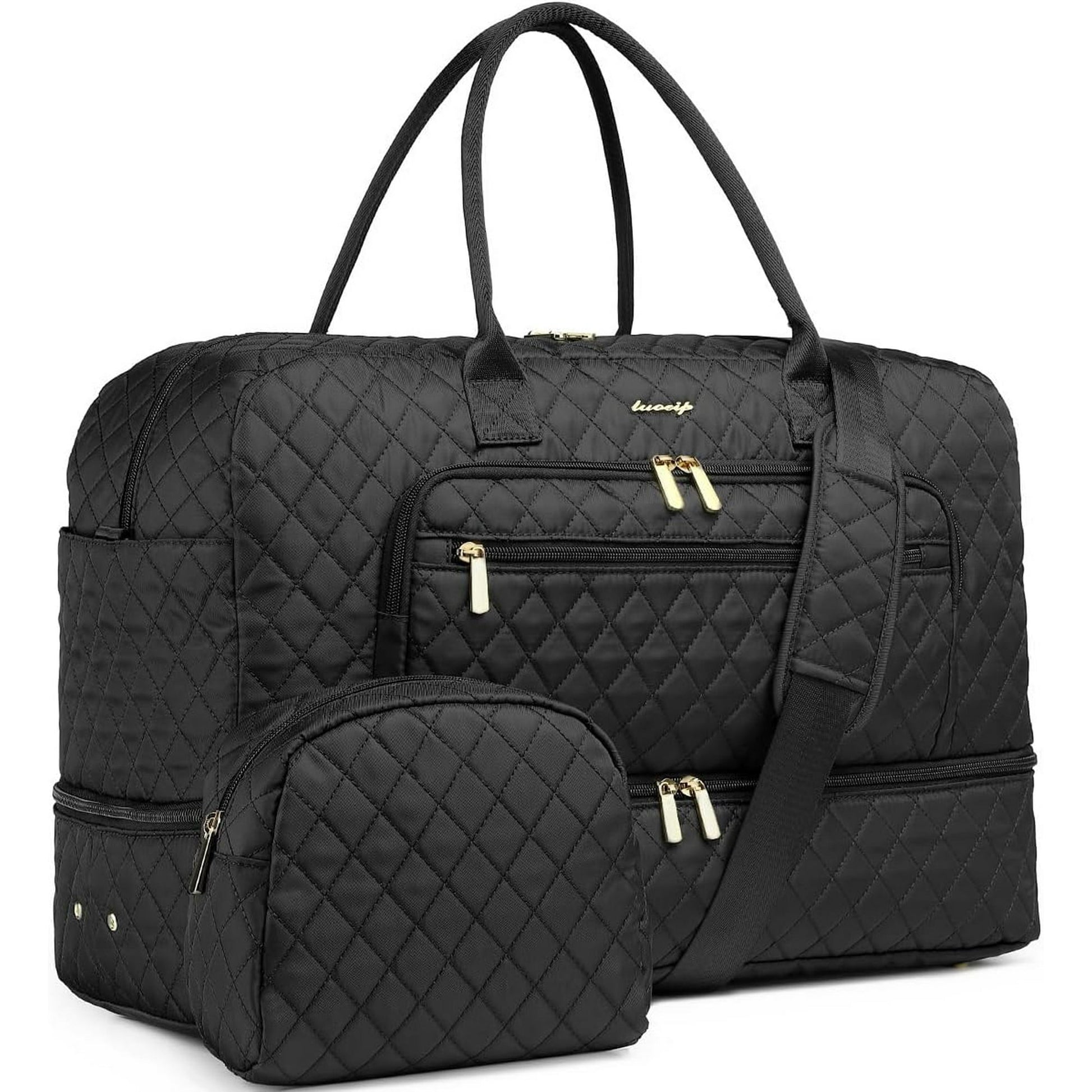 DAK19TBWB0000BK Weekender Bags for Women,Personal Item Travel Bag with Shoes Compartment,Overnight Travel Duffel Bag with Toiletry Bag, Black