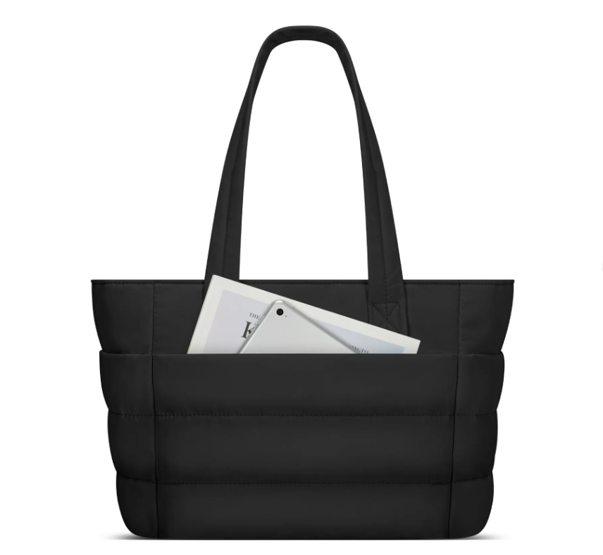DAKOMM Tote Bag for Women, Lightweight Puffy Tote Bag with Large Capacity, Quilted Shoulder Bag with Laptop Compartments & Multi-Pockets for Travel, Work, Gym, Shop(Black)
